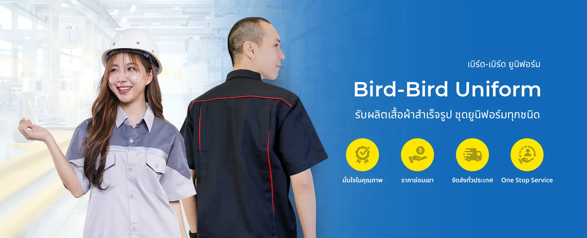 โรงงานรับผลิตเสื้อ  เบิร์ด-เบิร์ด ยูนิฟอร์ม พวกเราเป็นผู้ที่มีความชำนาญการผลิตยูนิฟอร์ม ครบวงจรและก็จัดจำหน่ายในราคาขายปลีก-ส่ง ทั้งเสื้อช็อป กางเกง เสื้อโปโล เสื้อซาฟารี เสื้อคอกลม แล้วก็อื่นๆรวมถึงบริการปักและสกรีน