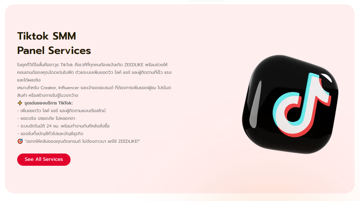 ZEEDLIKE.com ถูกออกแบบมาสำหรับคนที่ต้องการโตบนโซเชียลแบบจริงจัง โดยเฉพาะสาย TikTok จุดเด่นคือ
